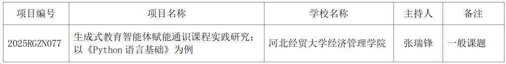 2025年河北省高校人工智能赋能教改专项课题立项建设名单