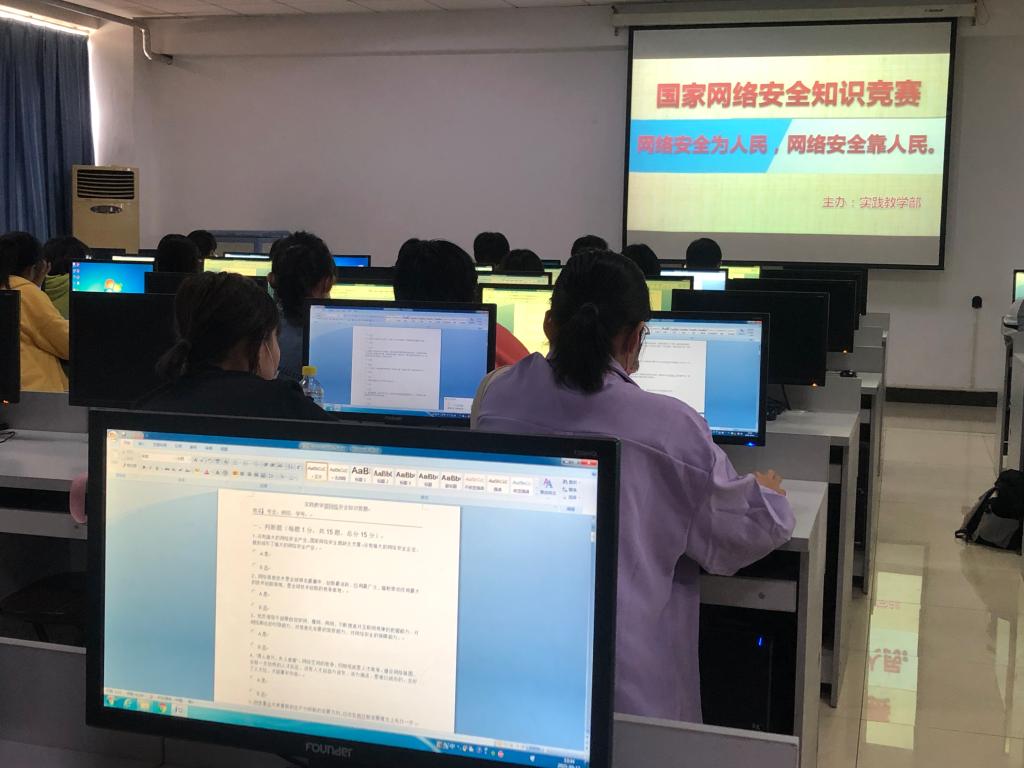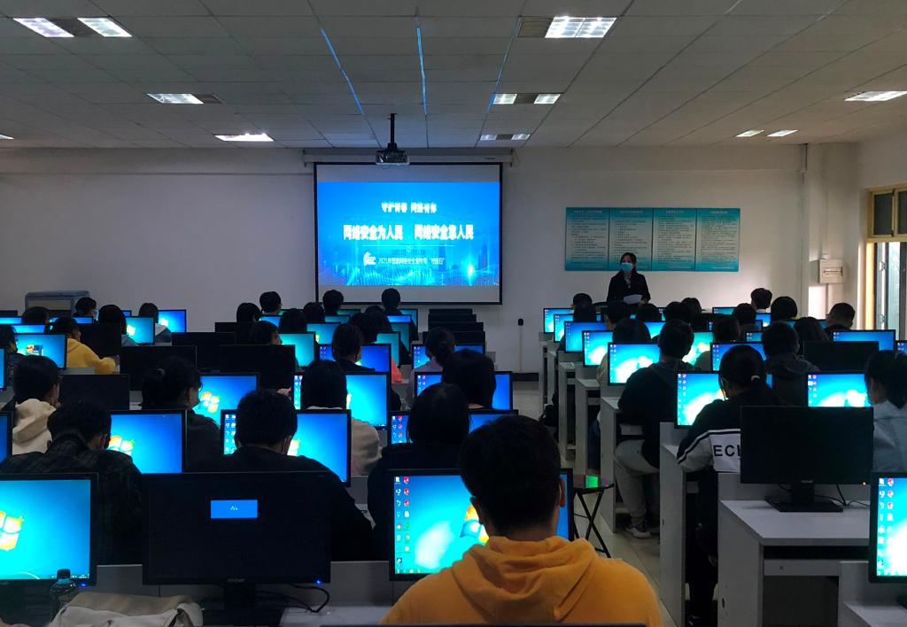 师生网络安全知识。10月12日,实践教学部在三教501机房组织各系大一新生代表100余人,开展2021年国家网络安全宣传周网络安全教育宣讲活动。
