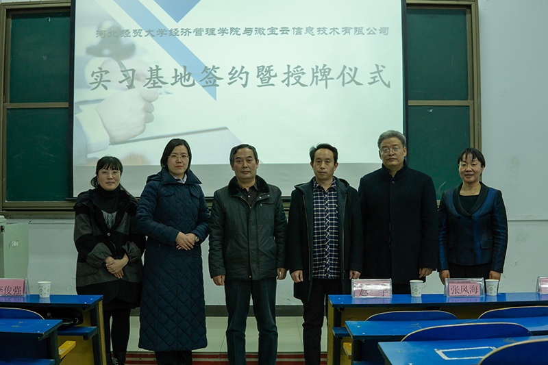 12月24日下午,会计系在西院东阶梯教室举办与微宝云信息技术有限公司建立实习基地的签约暨授牌仪式。微宝云信息技术有限公司李俊强总经理、小黄书