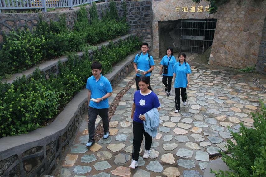 沿着木制景观道走上小山,遍布山体都是历史遗迹,这里是小山火山地质遗迹保护区。2003年,经河北省人民政府批准为省级火山地区遗址自然保护区。在古井群前,队员们伫立好久。这密集的古井群极为罕见,一方方古井,形状不一,作用不同,取水、制盐、灌溉,凝聚了千百年来海兴人民智慧的结晶与对更好生活的向往。实践队员们从田间耕作的村民口中了解到,以当地独有的小山沙土种植,以甘甜的古井水浇灌,山上的农作物也格外新鲜水灵。古地道遗址区遍布在小山腹中,纵横交错,历经战汉时期、宋金时期、抗战时期、备战备荒时期,置身于弯腰前进的空间里,实践队员们切身感受到了历代海兴人为了心中理想拼尽全力、浴血奋战之境,切身感受了革命之火与爱国之魂的生生不息。
