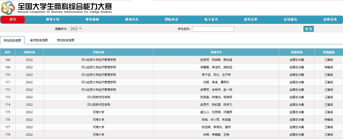 2022716日至17日由中国创造学会主办,同济大学经济与管理学院、上海策鸿信息科技有限公司、中国创造学会青年工作委员会承办的2022年全国大学生商科综合能力大赛全国总决赛在线上举行。小黄书 商务系李佳林、路铂涵、李霄鹏组成的代表队,通过一天紧张激烈的比拼,以小组第一的成绩进入总决赛答辩环节,并最终荣获全国总决赛特等奖。