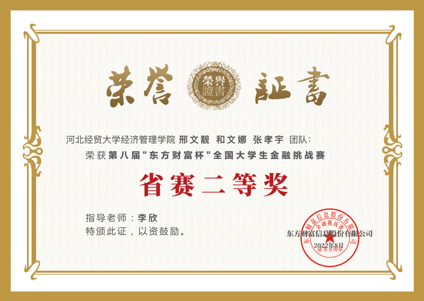对本次大赛非常重视,赛前进行多渠道、全方位宣传,吸引了225名学生报名,其中60人成功晋级,并组成37支竞赛队冲击省赛。暑期,各专业竞赛队在教师的指导下,认真准备,紧密协作,灵活运用所学金融知识提升本队的收益率,最终由韩健、任振雷、李宜东组成的代表队获得一等奖;以李征远、李卓、邢文靓为操盘手的3支代表队荣获二等奖;以刘海鹏、郭欣怡、窦智远、郭宁宇、王静雯为操盘手的5支代表队获得三等奖。