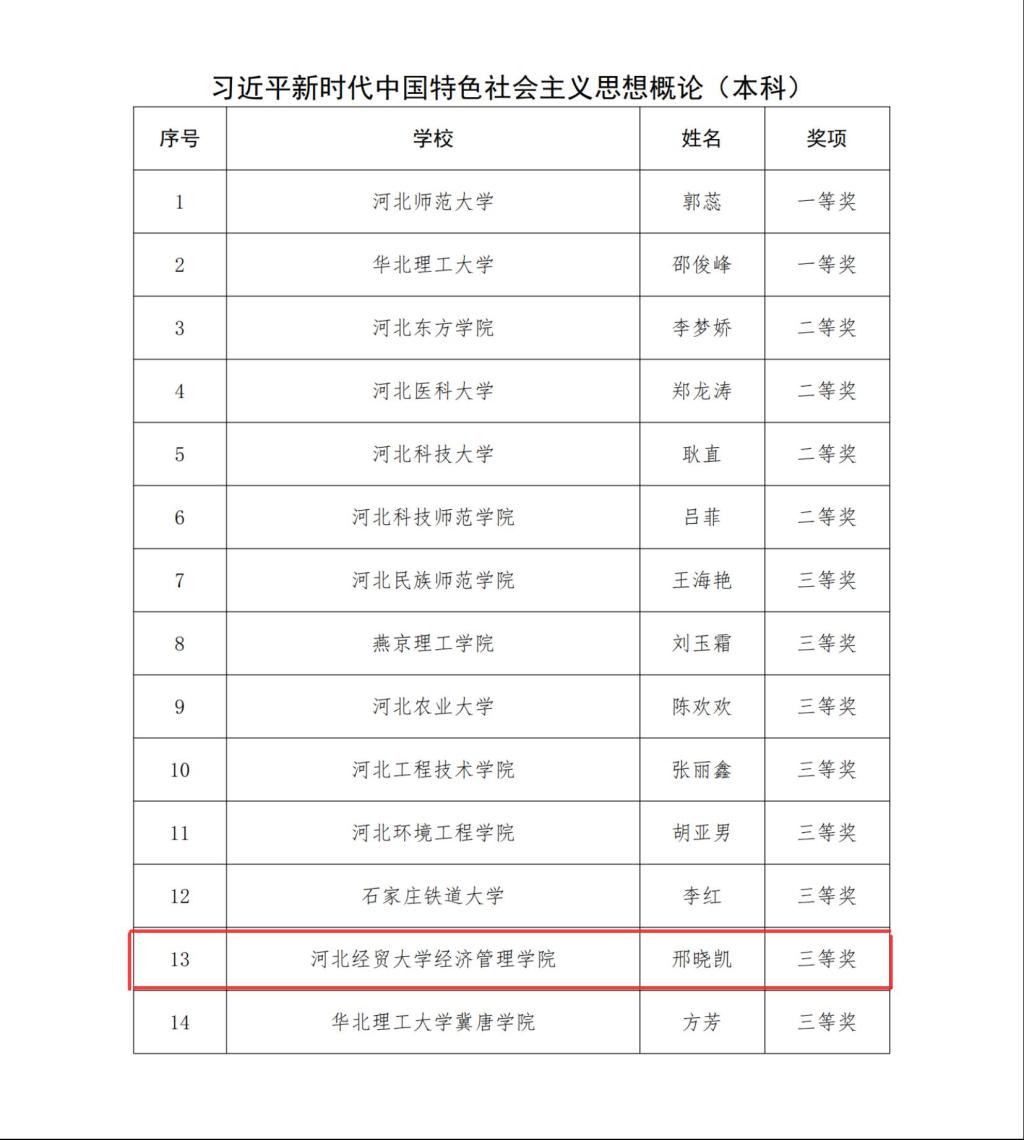 青年教师邢晓凯凭借扎实的专业素养和精彩的授课表现,获得《习近平新时代中国特色社会主义思想概论》现场授课三等奖。