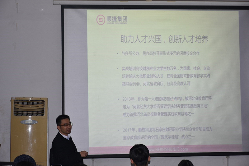 为了使财务管理专业学生学习的理论知识更好地融入实践之中、提升其实践操作能力,11月23日,管理系邀请河北顺捷财务咨询有限公司,在一教305教室进行了为期四天的财务管理专业素质提升实训活动。顺捷公司总经理李晨钟,主管经理申占业,管理系主任唐振龙及相关老师和61名学生参加了此次活动。