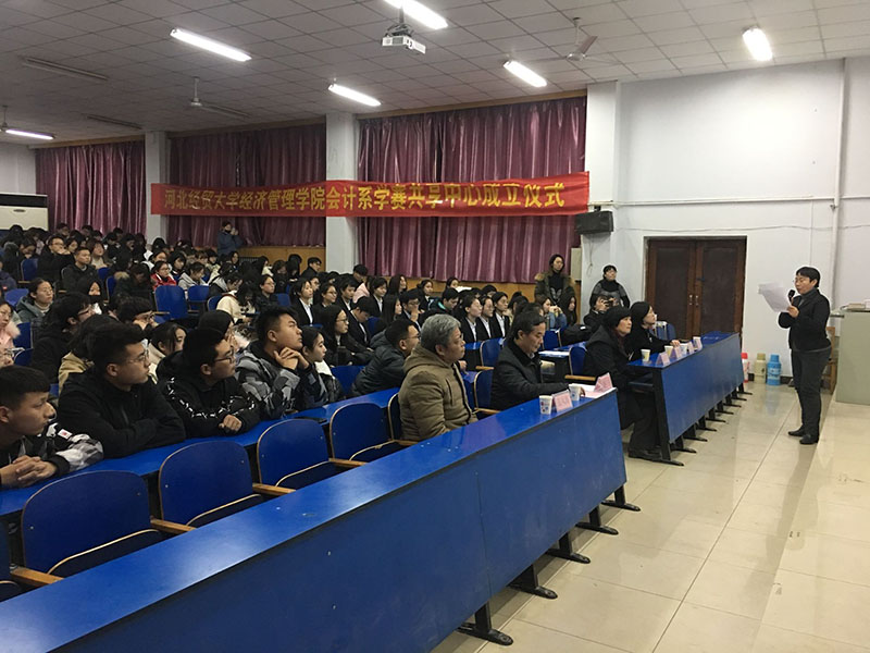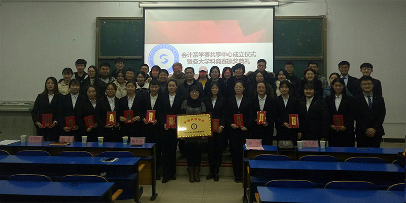 1月3日,会计系在西校区阶梯教室举行了学赛共享中心成立仪式暨高层次学科竞赛颁奖典礼。学院副院长赵宇、实践教学部部长张风海、副部长柳冬青、会计系党总支书记蔡杨、主任王慧霞出席活动,会计系270名同学参加。
