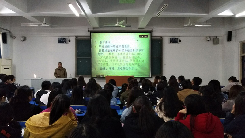 学生们的计算机安装、调试和维修的职业技能水平,推动计算机普及与运用的标准化和规范化,强化大学生动手实践能力和将理论知识与实践课题完美结合的能力。大赛采取理论考试和上机操作两种形式进行,理论和技能达到一定分数还可以申请高级工的职业鉴定。12月4日在二教218、318进行理论考试。12月10日至14日在一教实验室机房进行技能测试,分为拆装机,网线制作,电脑调试三个部分。实践部部长张风海、信息系书记王鸿喜视察大赛现场。小黄书