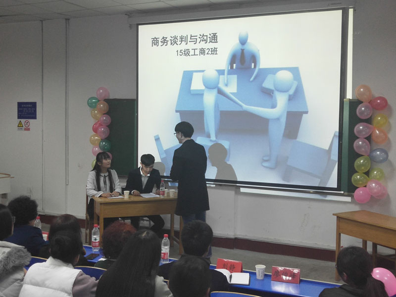 柳冬青做总结方言时对全体学生给予表扬,对本次实训方案设计及同学们的展示给予肯定,对工商管理专业全体学生的综合发展进行了具体指导。