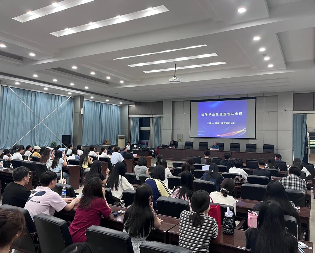 ,为全院师生带来了一场主题为《法学学业生涯规划与考研》的专题报告。此次报告会由院长李大庆主持,副院长王鸿喜出席,就业工作部及180余名法学专业学生到场聆听。