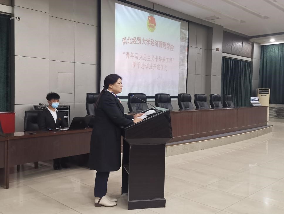 2021年“青年马克思主义者培养工程”开班仪式在学院学术报告厅举行。院党委书记马斌、党委副书记张丽英、各系党总支书记及学工部部长出席,各系团总支书记、青马临时团支部辅导员以及本期培训班的200余名学员参加。仪式由院团委书记唐莉主持。