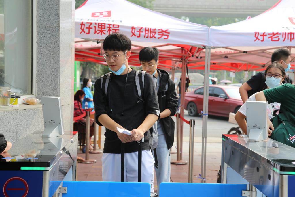 10日一大早,学院领导,经济系、信息系、文法系书记,学院办公室、学生工作部、院团委、安全工作部、后勤保障部等相关部门负责人就来到校园,实地查看学生返校情况,迎接慰问返校学生。上午9点钟学生们陆续返校,在接受志愿者查验两次核酸检测阴性报告、健康码及行程码后,到门口在核验身份,测量体温有序入校。