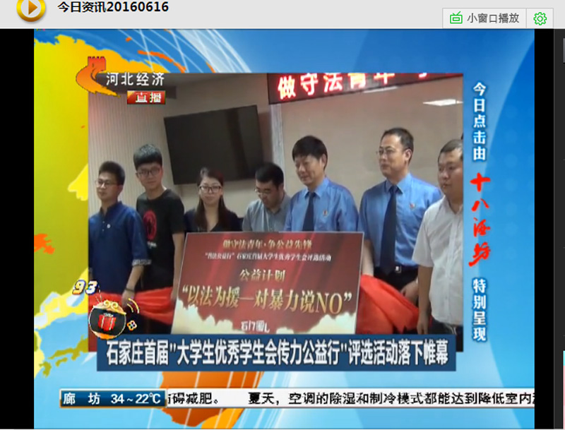 6月16日,由石家庄市裕华区检察院等多部门共同开展的“做守法青年·争公益先锋”—— “普法公益行”石家庄首届“大学生优秀学生会传力公益行”评选活动落下帷幕。小黄书