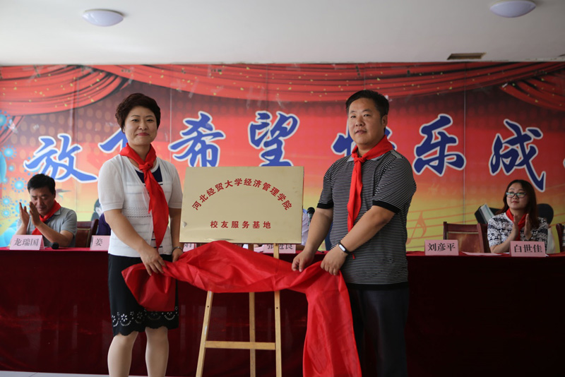暑期社会实践暨“校友志愿服务基地”揭牌仪式在张北县大西湾乡中心小学举行。院党委书记张进良、副书记刘会娟,张北县政协副主席候生莉,大西湾乡党委书记刘彦平,大西湾乡中心小学校长龙瑞国出席活动。学院团委副书记刘琦,团委老师梁博宇、孙萌,优秀毕业生代表、张家口哈必嘎乡办公室副主任白世嘉、学院20名大学生志愿者以及大西湾乡中心小学全体老师学生近百人参加活动。仪式由张北县团委书记武岩主持。