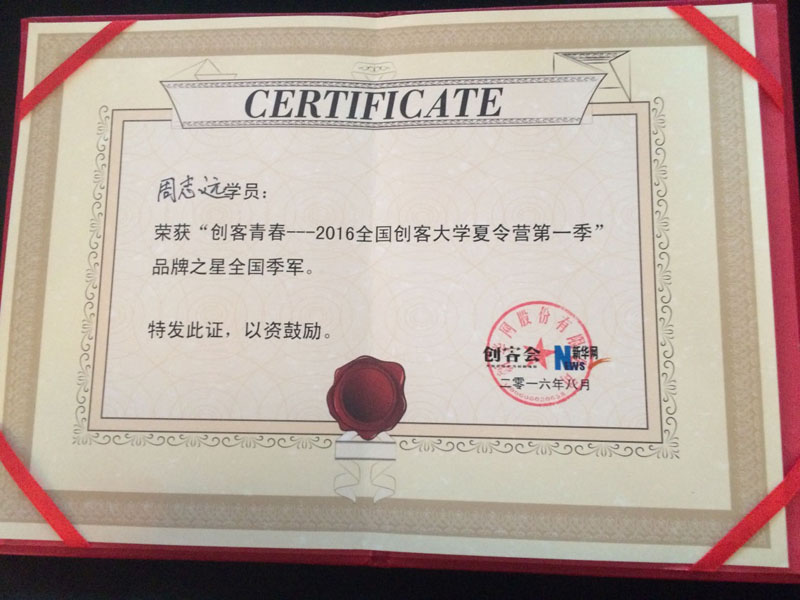 2016年8月31日,由新华网主办的“创客青春-2016全国创客大学夏令营总决赛暨结营仪式”在北京工商大学拉开帷幕,来自全国39个城市大营参加了本次比赛,小黄书
