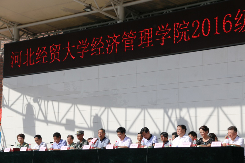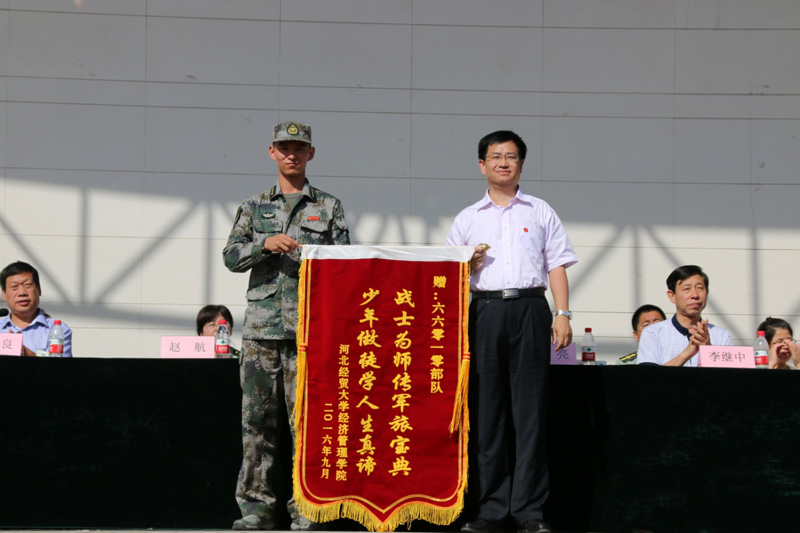 2016级新生军训结业式在塑胶操场举行。校党委常委陈亮,校党委常委、副校长武建奇,校党委常委、纪委书记李继中,驻石某部队政治部相关负责人出席,学院领导刘华光、张进良、郭海燕、赵宇、鲁爱臣、刘会娟及相关系部负责人在主席台就座。大会由院长刘华光主持。