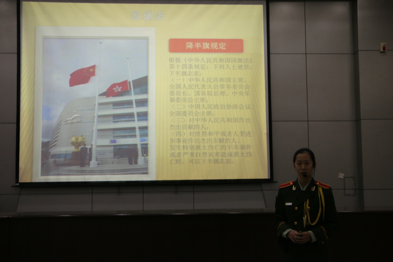 此次换届仪式在以往交接活动的基础上还增加了国旗文化宣讲内容。五位宣讲团成员为大家讲解了国旗国徽国歌制定过程,国旗缝制第一人和《国旗法》重要内容等知识。现场听众不仅了解了国旗所蕴含的的历史文化,也体会到了作为国旗护卫队队员的责任感、忠诚感与荣誉感。