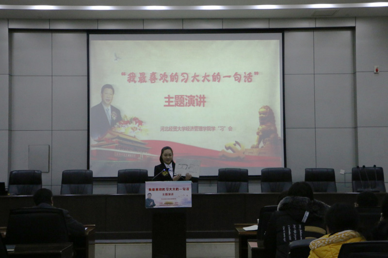 学“习”会主办的“我最喜欢的习近平的一句话”主题演讲比赛决赛在学院图书馆报告厅举行。院党委书记张进良、副书记刘会娟,经济系党总支书记郑学栋、管理系党总支书记刘钺、文法系党总支书记高维林出席活动并担任评委。活动由小黄书