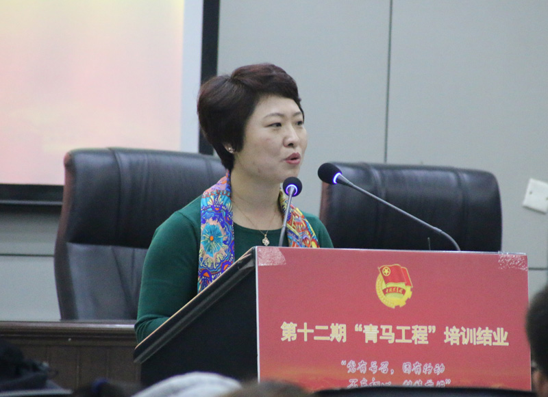 刘会娟在会上做总结发言,她把“认同、实践、积累” 三个词作为结业礼物送给“青马工程”受训学员。她说,团学干部要明辨是非,追根溯源,从思想和价值观上坚定对共产主义远大理想和中国特色社会主义共同理想的认同;在坚持不懈的实践中不断提升自我,把认同落实到位,进而引领他人;学生干部要抓住大学为同学们提供的每一次锻炼机会,勇于承担,不断积累,最后才能完成由量变到质变的提升,把自己真正锻炼成为一个合格社会主义接班人。