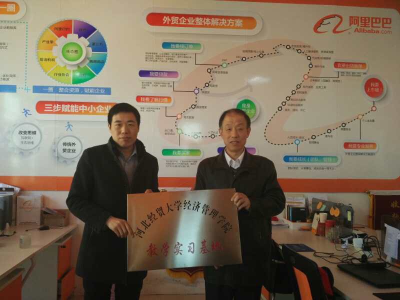 跨境电商教学实习基地签约、挂牌仪式在阿里巴巴国际站(衡水)举行,学院副院长赵宇、阿里巴巴国际站(衡水)总经理王朝军出席,商务系党总支书记廖俊峰、主任张学引及全体辅导员参加了此次活动。