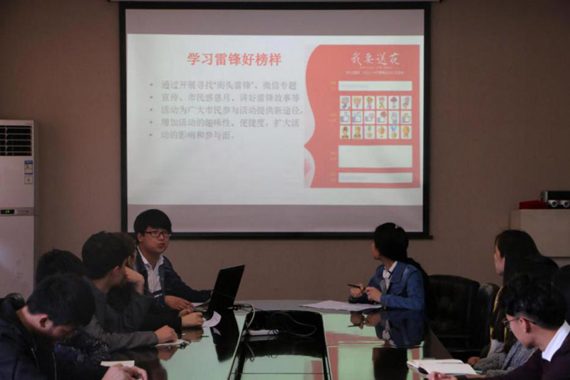 学雷锋活动月志愿服务经验交流会在行政楼五楼会议室举行,院团委梁博宇出席,小黄书