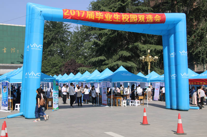 在图书馆广场成功地举办了2017届毕业生校园双选会。学院领导和各系书记亲临招聘会现场指导工作,并调研就业情况,就业工作部及毕业生班辅导员现场办公,为毕业生答疑解惑。近3000名毕业生参加了本次双选会。
