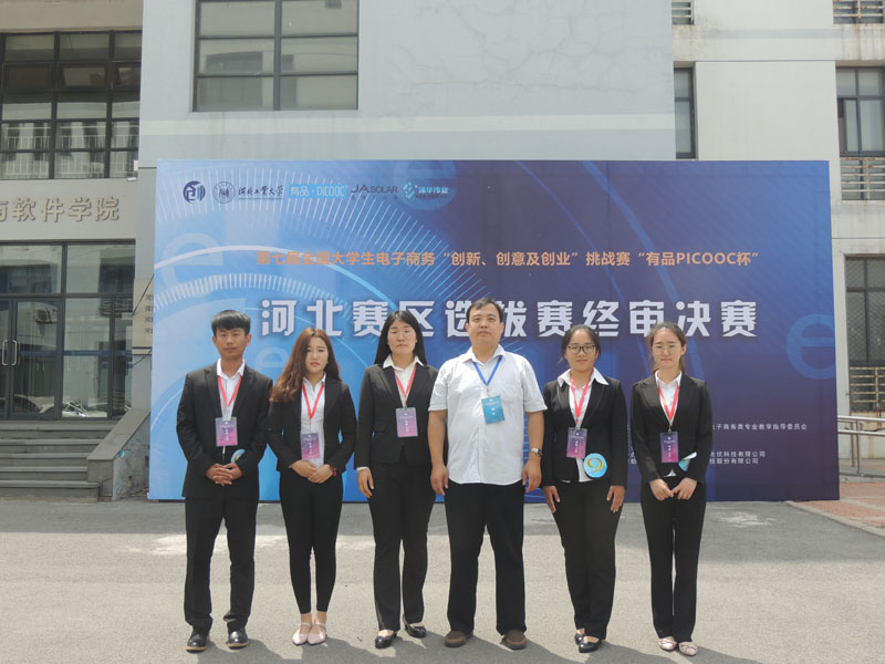唯一进入省赛的团队,商务系2015级电商一班王君彦、段文静、朱永发、王博业、杨亚园5名同学,由辅导员赵云岩、李雪松带队指导,与从来自河北工业大学、河北大学、燕山大学、河北师范大学、河北工程大学等多所高校的64支队伍同台竞技,并脱颖而出。