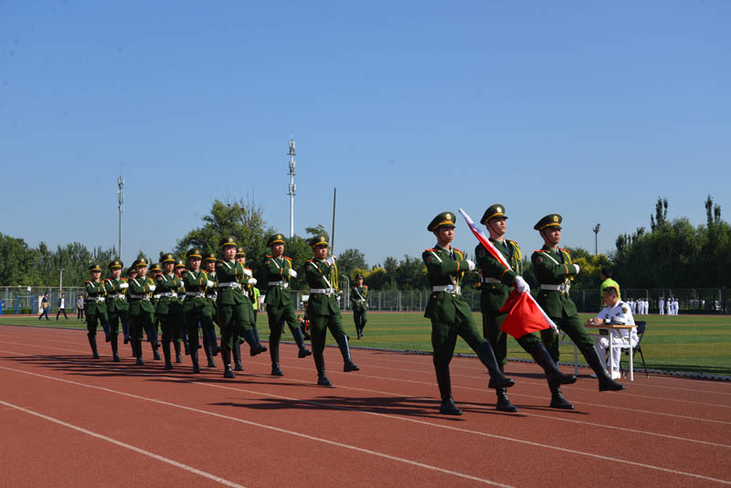 9月29日上午,来自全国各地35所高校的国旗护卫队在北京航空航天大学体育场参加评比,小黄书