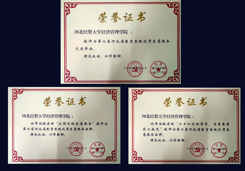 信息系、管理系协会青年志愿者被评为优秀志愿服务组织;梁博宇、姜瑞被评为优秀志愿服务先进工作者;唐莉、赵云岩被评为优秀志愿者。