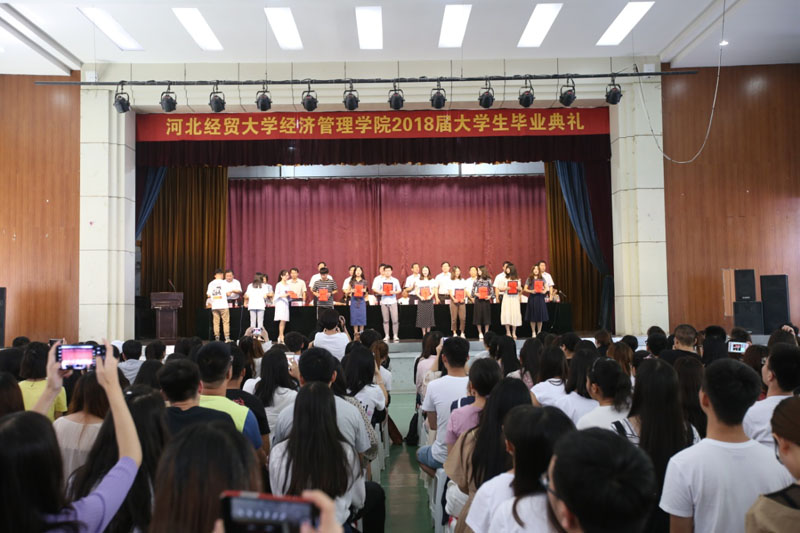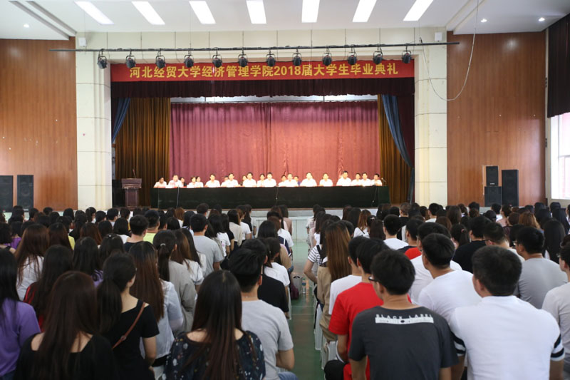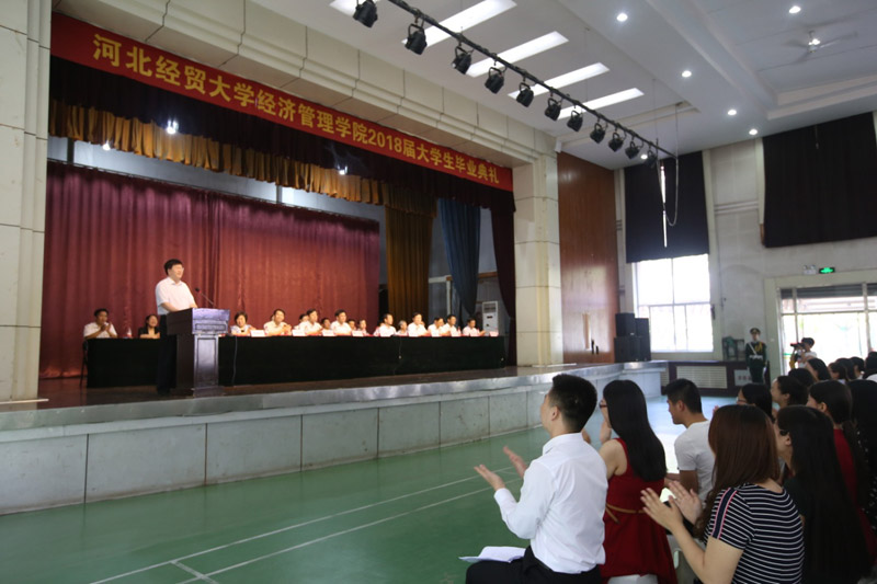 “四年前,大家怀着对大学生活的美好憧憬和向往,从‘四海八荒’来到国际庄、来到滹沱河畔、来到美丽的经管校园,在此开启了崭新的学习生活”,纪良纲带着同学们回忆了初入校园的情景,并对同学们的成长给予了认可:“几年来,你们在学思践悟中锻炼了才干、增长了本领,用青春写下了属于你们自己的经贸篇章”,“全体老师都要为你们打call”。