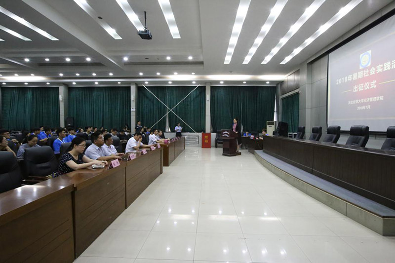 2018年暑期社会实践出征仪式在学院图书馆报告厅举行。院党委书记张进良、副书记张丽英,各系党总支书记、学院宣传部、团委相关负责人、各系团总支负责人及社会实践师生代表参加出征仪式。仪式由学院团委副书记唐莉主持。