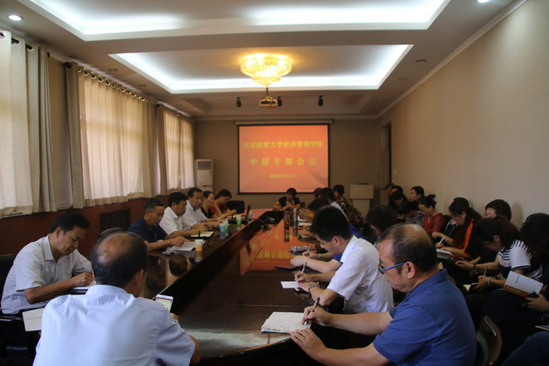 中层干部会在学院行政楼五楼会议室召开。学院领导和全体中层干部参加会议。会议由学院党委书记张进良主持。