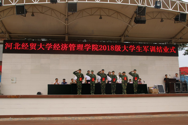 院党委副书记张丽英宣读了军训工作获奖名单。会计系、商务系、信息系荣获军训工作先进单位;管理系、经济系、文法系荣获军训工作优秀组织奖;郑敬禄、董新泽、王美涵等25人荣获军训优秀教官;李燕、李欣、耿华伟荣获军训先进个人;97名同学被评为军训标兵。