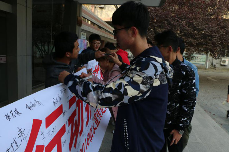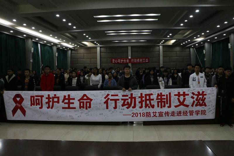 大学生郑重地在“呵护生命,行动抵制艾滋病”的条幅上签下自己的名字,承诺远离艾滋病。随后,石家庄市疾控中心艾滋病研究所王莹莹在图书馆报告厅为300余名大一新生做了“青少年 抗击艾滋病的生力军”主题知识讲座。王莹莹首先向大家举例介绍了近些年我国大中学生艾滋病病毒感染情况,用大量图表数据解释学生之间艾滋病传播的途径,然后系统地介绍了什么是艾滋病、艾滋病的传播途径以及病毒的繁殖过程等基本知识,纠正了大家对艾滋病的误解,并详细地讲解了预防艾滋病感染的方法,提醒男女同学应该注意的安全防范事项,希望青年学生珍惜生命,提高预防意识和防护能力。