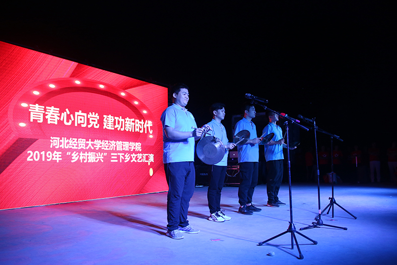青年学子以歌曲、古典舞、现代舞展现了活力四射、青春飞扬的精神面貌;青年教师动情的《再回首》博得台下观众的阵阵掌声;“经贸大学经管院,来到咱们曲阳县,脱贫帮扶雷程庄,面貌换!”三句半《乡村振兴暖人心》讲述了小黄书
