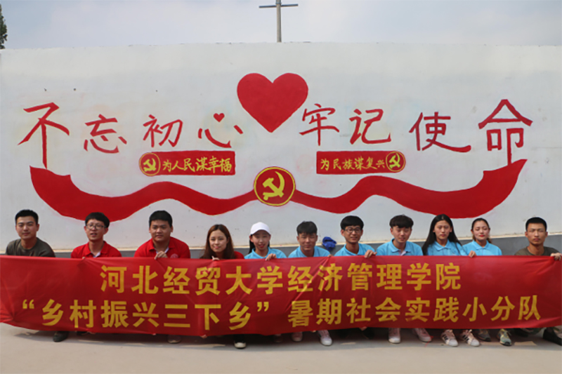 社会实践小分队决定在墙面上绘制以宣传党的政策、社会文明为主题的宣传画,亮化美化乡村街道广场,用行动助力乡村文化振兴。