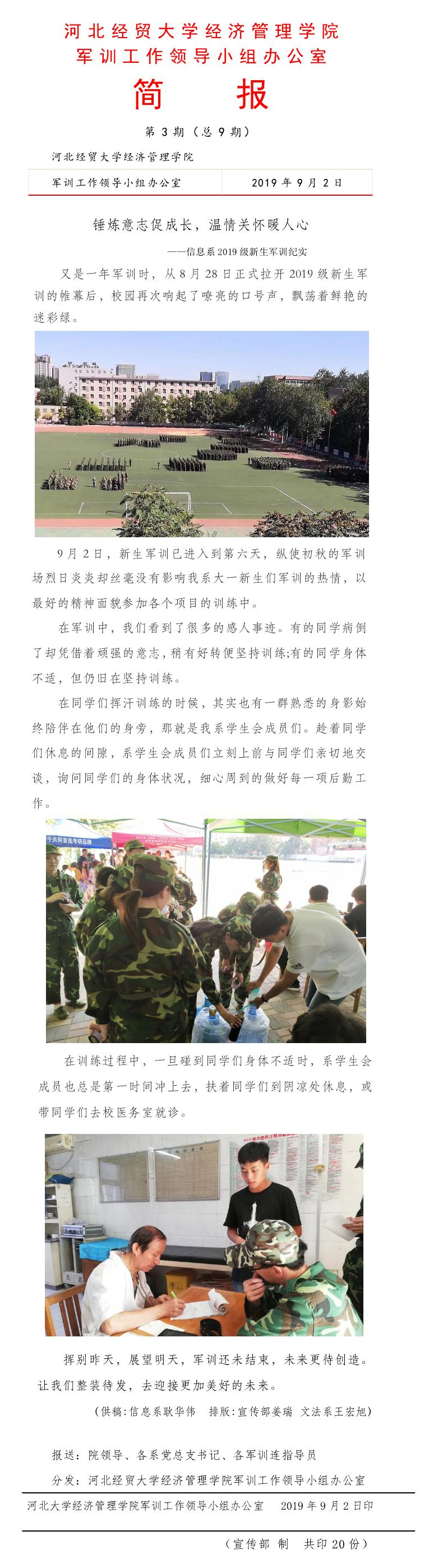 2019级新生军训工作简报第3期(总9期)