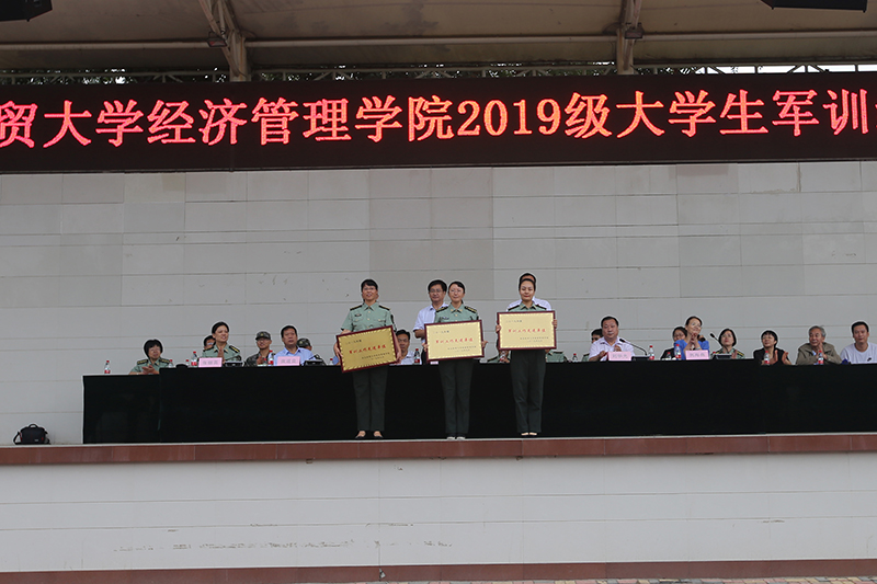 郭海燕和张丽英宣读了军训工作获奖名单,会计系、商务系、信息系荣获军训工作先进单位;管理系、经济系、文法系荣获军训工作优秀组织奖;经济系、信息系获得军训科目表演优秀奖。