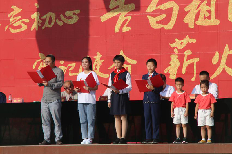 操场举行。老教授、大中小学生及幼儿齐聚舞台,以国旗为题作词献礼,同台朗诵,共同庆祝国旗诞生70华诞。