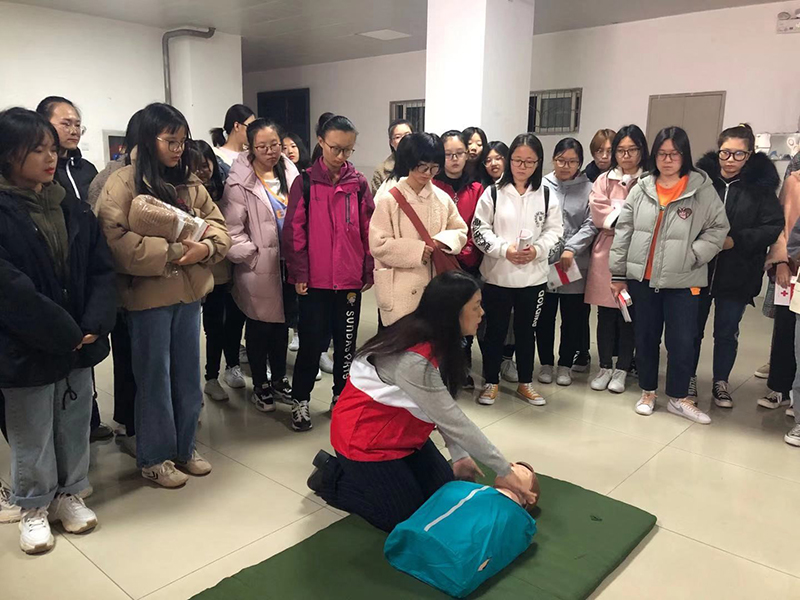 具备应急救护师资资格的教职工担任主讲人,大一新生2200余人参与。
