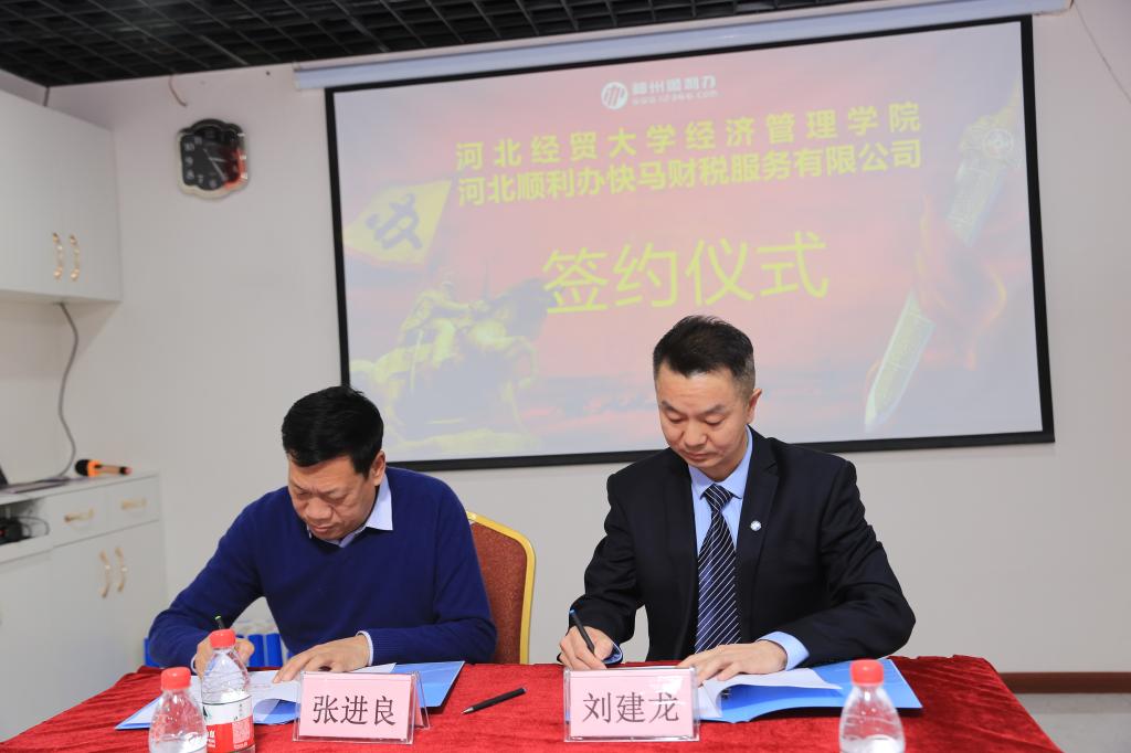 与河北顺利办快马财税服务有限公司校企合作签约暨挂牌仪式,在河北顺利办快马财税服务有限公司石家庄总部店成功举行。学院党委书记张进良、河北顺利办快马财税服务有限公司总经理刘建龙为基地挂牌,会计系党总支书记蔡杨、会计系主任王慧霞、就业工作部部长韩平生、副部长秦晓燕、会计系辅导员及以及河北顺利办公司相关部门负责人参加了签约挂牌仪式。