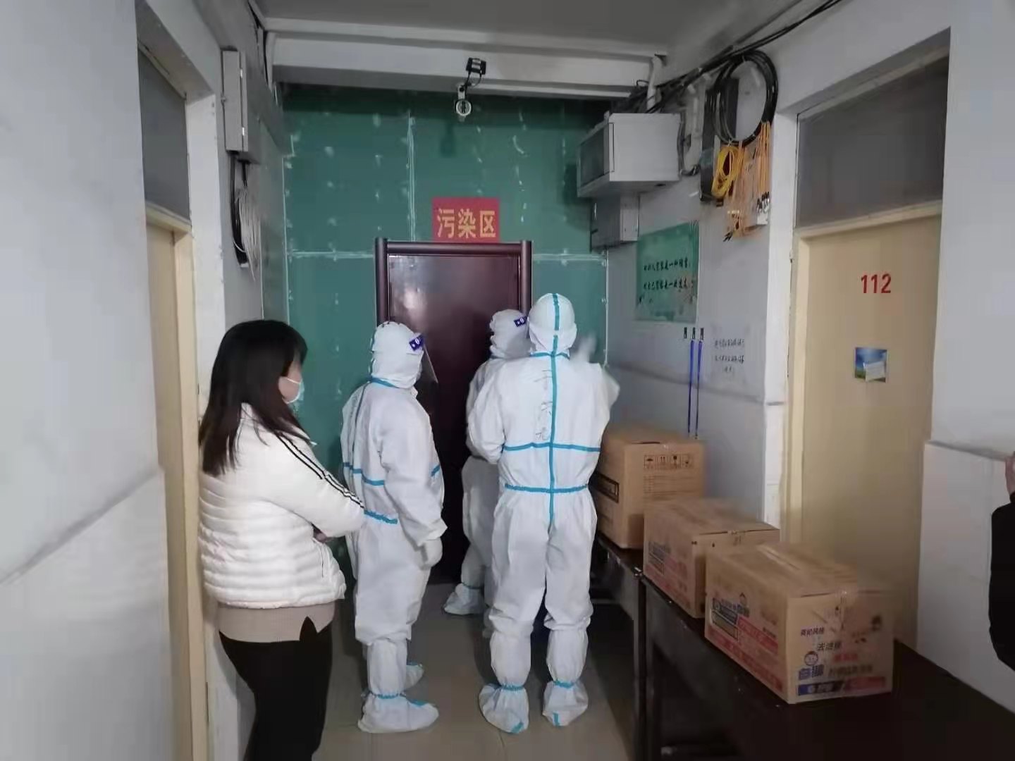 南后勤副部长王大权、公寓教室服务中心主任田恒通,职工卢福堂、樊学英,绿化环卫服务中心主任张建伟、动力保障服务中心主任赵永琴、电工班长张占军、水暖工班长陈晓亮组织施工人员,连夜奋战,完成了校园内隔离墙建设、征用区域围挡以及征用宿舍加装楼道隔断等任务,并对征用区域灯管、插座等用电设施设备进行了检修,在学院门口、通道紧急加装了照明设备;对公寓内洗手池、墩布池、暖气、卫生间上下水设备设施进行了检修、更换;对学院外围污水管道进行了疏通、消毒;调节供暖设备以保障隔离区房间温度;期间,还紧急抢修了开水房,以保障全天开水供应;此外,还联系热力公司提高供热温度,联系供电局保障不停电,紧急情况下配备发电机,联系环保局安装排污消杀设备。