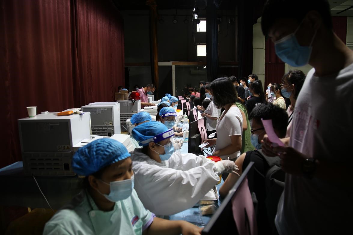利用6月9日和10日两天时间,在礼堂集中组织师生新冠疫苗第二针的接种工作。