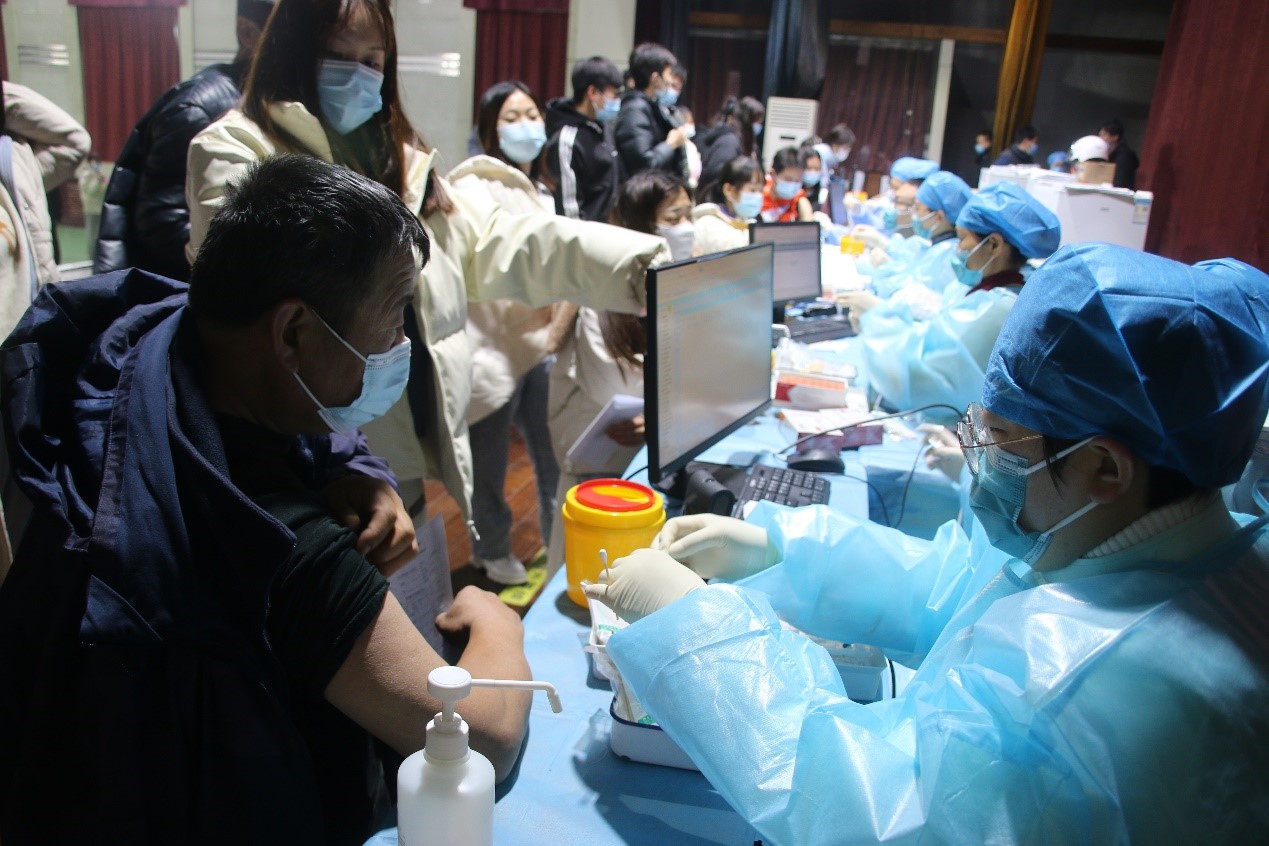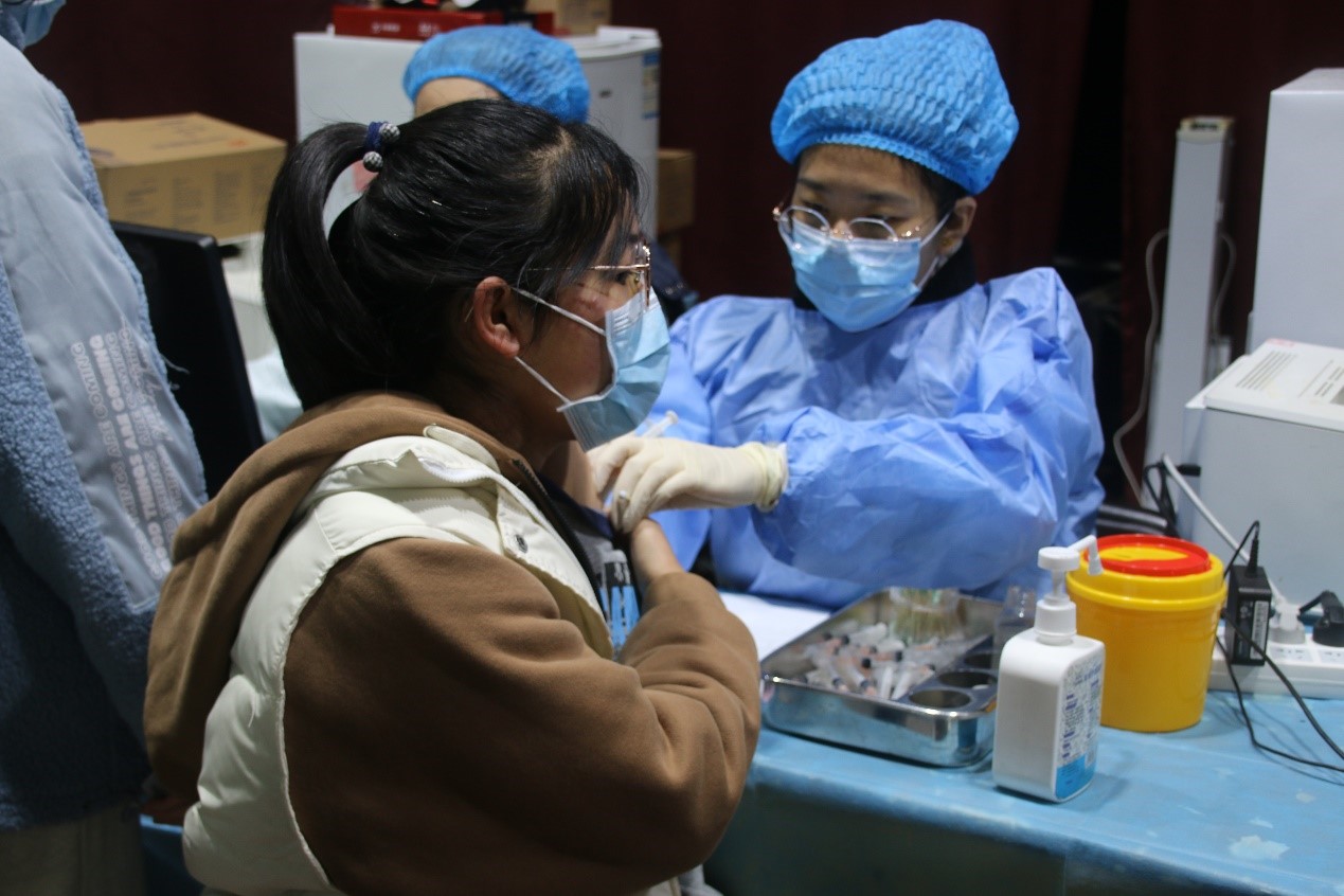 利用12月11日和12日两天时间,在礼堂集中组织师生开展新冠疫苗加强针接种工作,符合接种条件的师生全部完成接种。