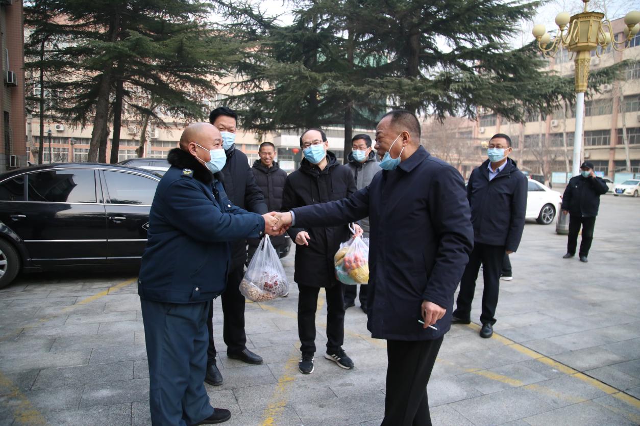 马斌、刘风长一行等走访慰问了学院南、西校区门岗、监控室、网站、配电室、热力交换站、宿管等岗位值班人员。每到一处,学院领导对值班人员的奉献精神和敬业精神表示感谢,并代表学院为他们送上慰问品与新春祝福,同时不忘叮嘱大家务必高度重视疫情防控,做好自我防护,确保“外防输入”各项措施落实落细。
