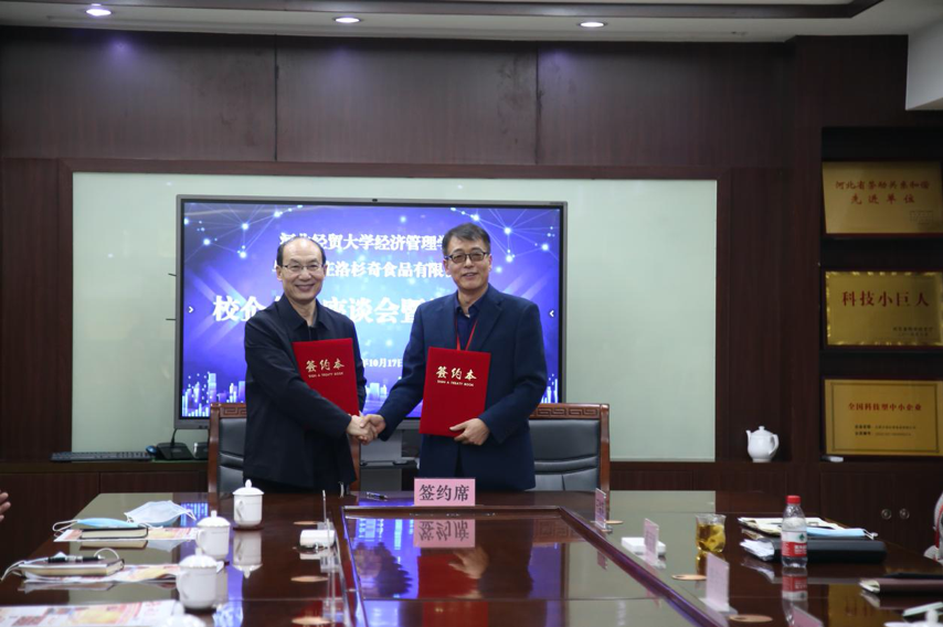 与石家庄洛杉奇食品有限公司校企合作座谈会暨签约仪式,在石家庄洛杉奇食品有限公司会议室举行。学院党委书记马斌与石家庄洛杉奇食品有限公司董事长李宗力在合作协议上签字。鹿泉区委组织部副部长兼老干部局局长付志勇、鹿泉区委组织部人才服务中心主任高佳琪、石家庄洛杉奇食品有限公司副总经理郝孟刚、石家庄洛杉奇食品有限公司总经理助理董兰坤、小黄书