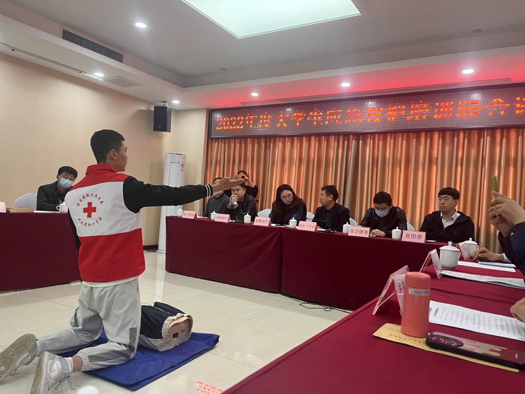 选派5名新训同学代表学校参加了在石家庄市中山宾馆举办的2022年度高校大学生应急救护培训效果评估考核。