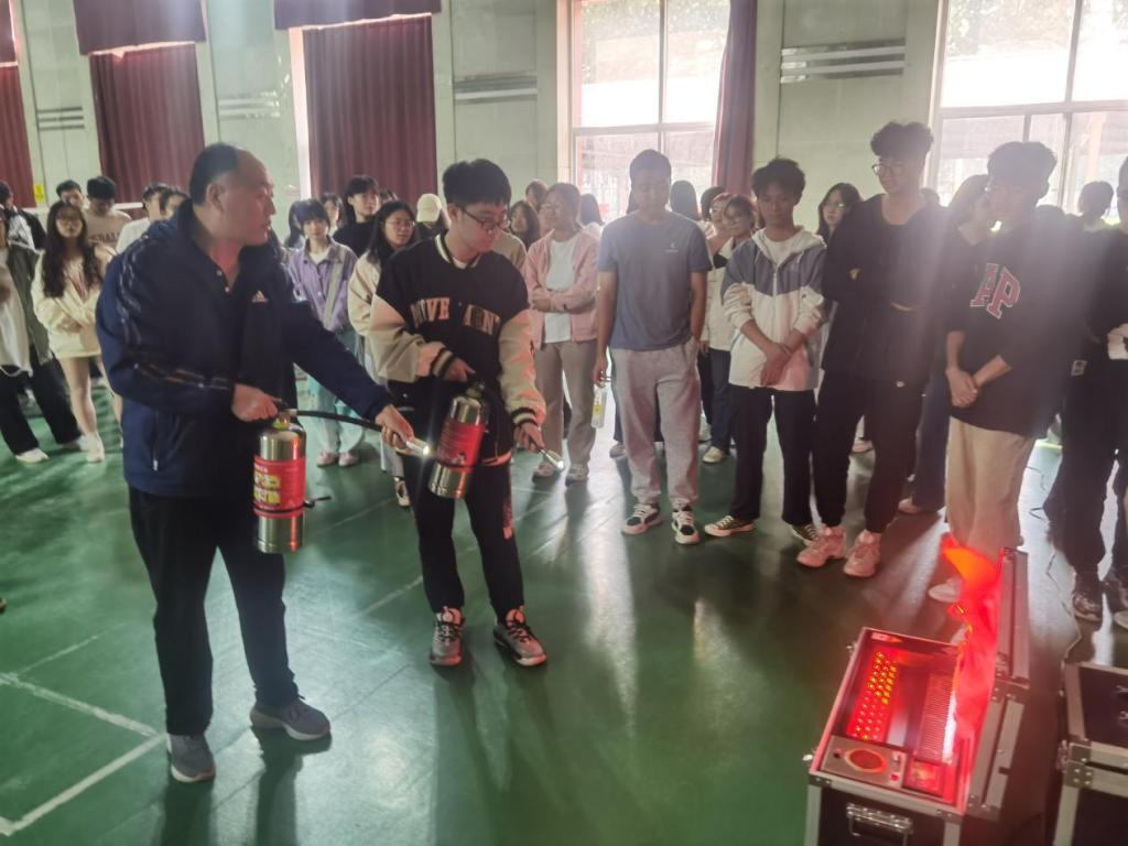 师生的消防安全意识,10月13日下午,安全工作部邀请北京麦课安全教育集团指导师杨晓光,在学院礼堂组织了一场消防设备实操演练活动。商务系2023级新生、辅导员和学生干部代表200余人参加了此次实操活动。