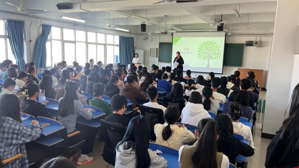 南北校区为大三、大四学生做“简历制作与求职面试技巧”专题讲座,南校区由学院党委副书记张丽英主持。北校区由经济系主任张瑞锋主持。