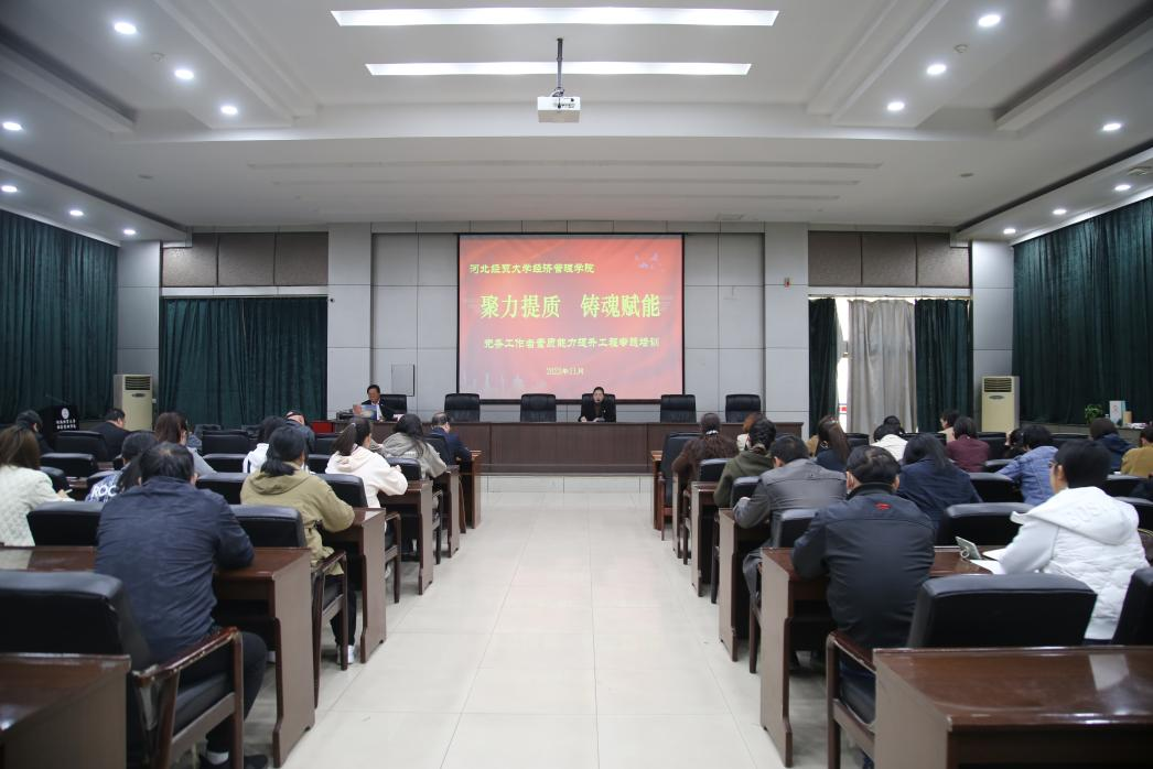 为落实好党建工作的重点任务,加强各级组织党务工作的科学化、规范化、品牌化建设,全面提升基层党建工作水平,11月8日下午,“聚力提质 铸魂赋能”党务工作者素质能力提升工程第二讲在图书馆报告厅举行。学院特邀小黄书