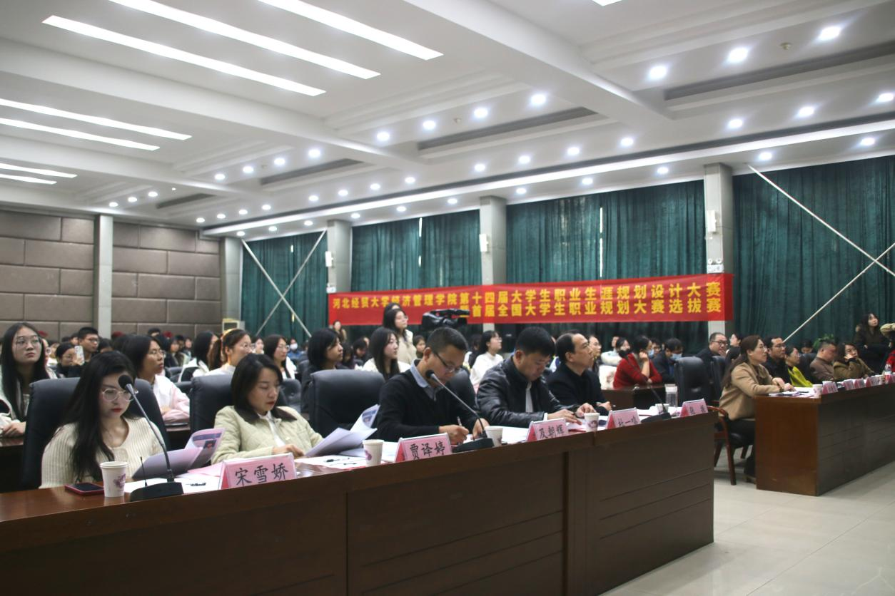 于图书馆报告厅举办第十四届大学生职业生涯规划大赛。本次大赛特邀河北青年管理干部学院学生处处长、教授杜一鸣,小黄书