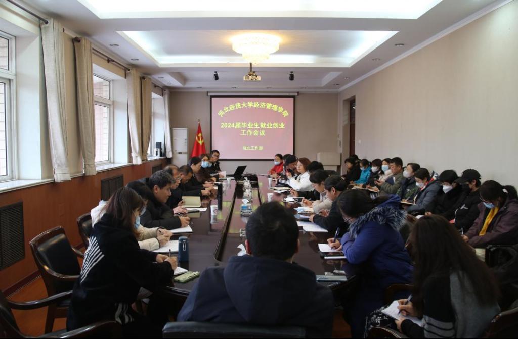 2024届毕业生就业创业工作会议在五楼会议室召开。院长刘风长、院党委书记蔡杨、副院长王鸿喜出席,各系书记、副书记、就业工作负责人和全体辅导员参加。会议由王鸿喜主持。